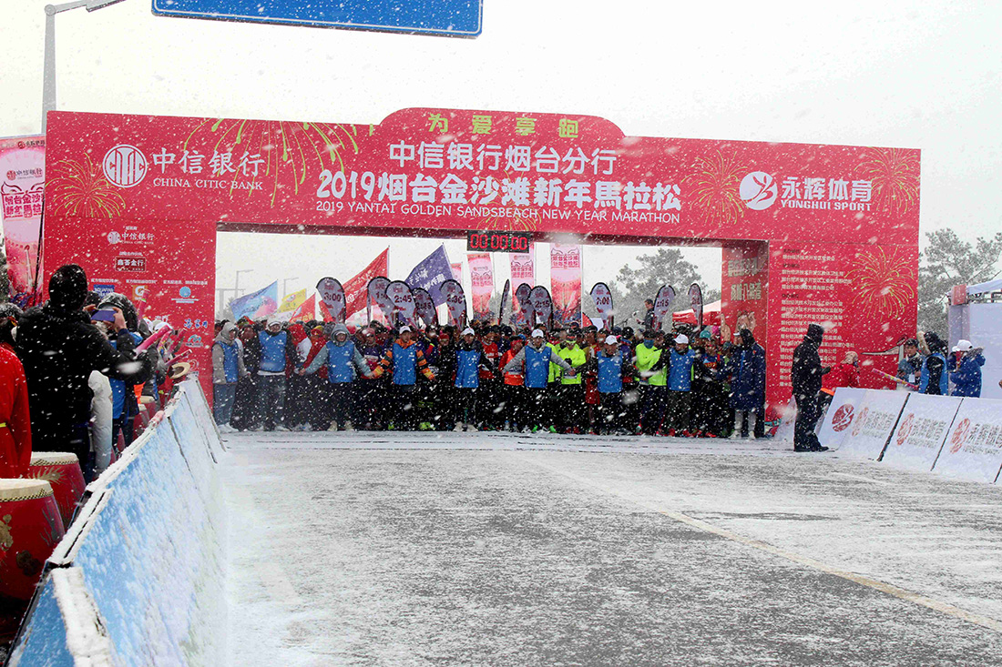 伴著發(fā)令聲響起2019煙臺(tái)金沙灘新年馬拉松盛情開跑